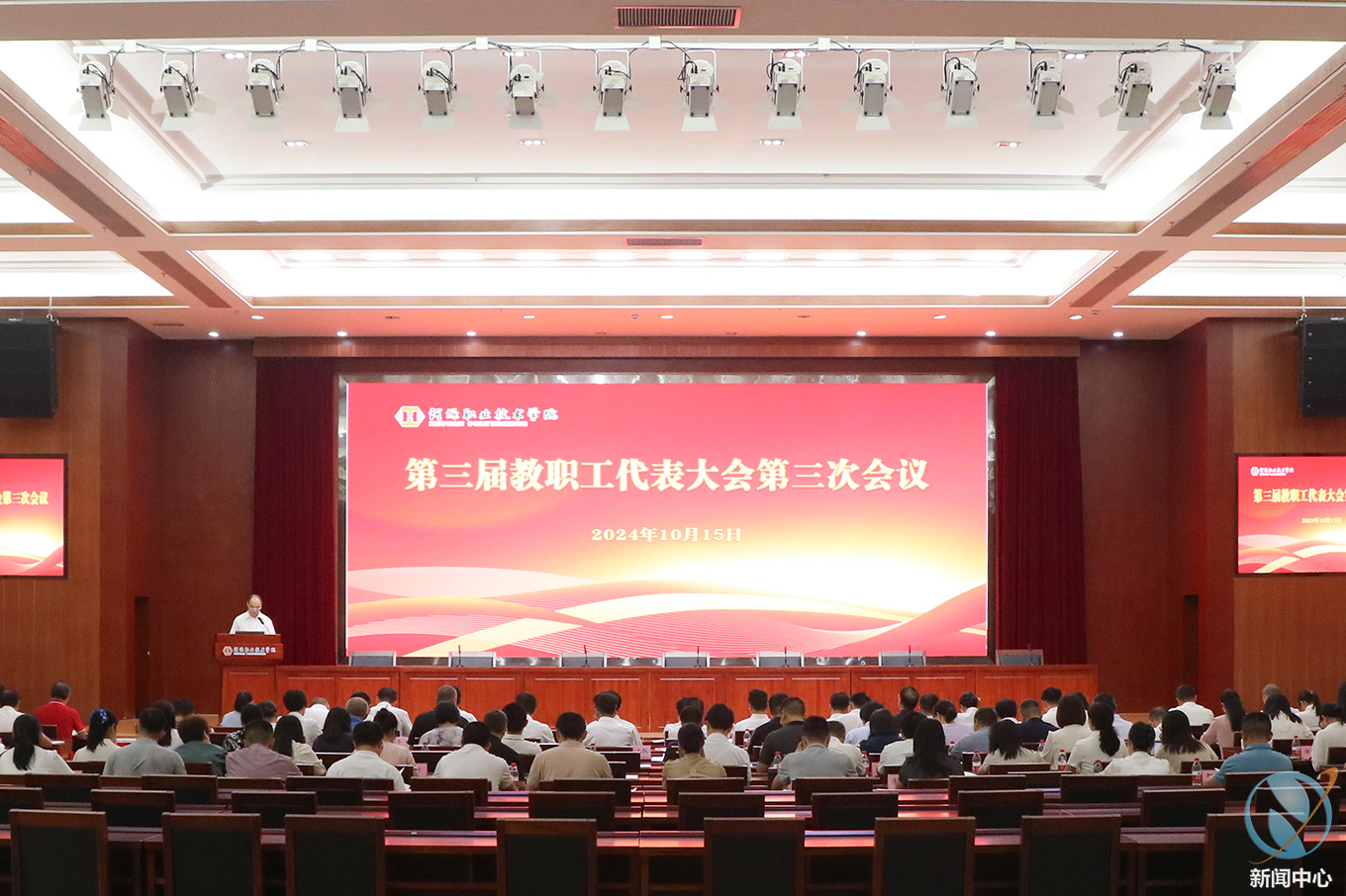 10月15日下午,乐投官网第三届教职工代表大会第三次会议在学术交流中心报告厅召开。本次会议的议题是审议表决《乐投官网职称评审制度文件》。会议由赖小景副校长主持,学校党委书记韦荣、校长刘贻新出席了会议。
