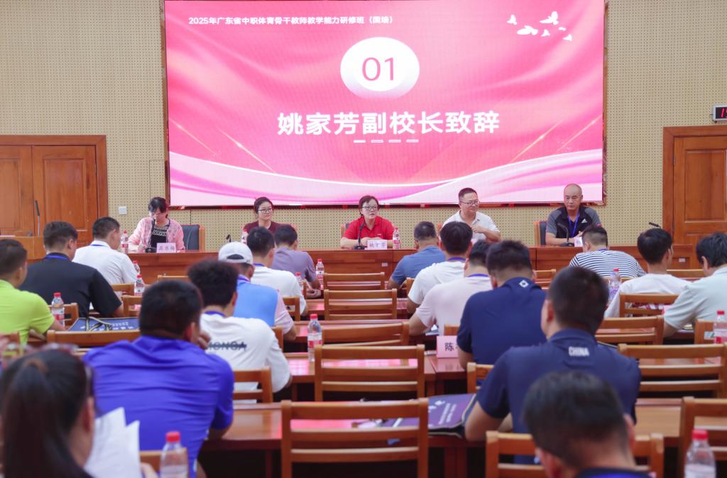 姚家芳副校长在开班致辞中向全体学员表示热烈欢迎。她回顾了河职院的发展历程,特别提到学校作为粤东西北地区唯一入选省域“双高计划”的高职院校,始终致力于职业教育的高质量发展。她指出,本次研修班是省教育厅落实“体教融合”战略的重要举措,旨在通过系统培训提升中职体育教师的核心教学能力,为职业教育注入新活力。研修班将围绕“骨干”二字,搭建学习交流的高端平台,希望学员们珍惜机会,做到“潜心学习、互动交流、学以致用、严守纪律”,将先进理念带回教学一线。
