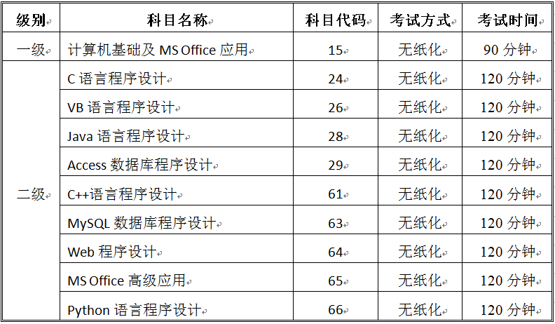备注:1.二级Python语言程序设计科目2018年9月首次开考。