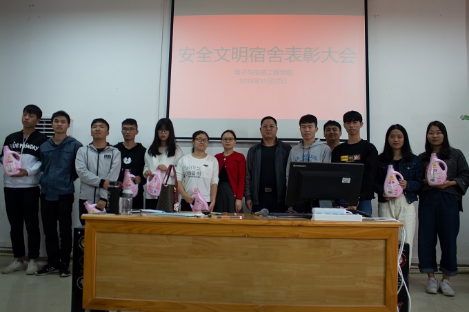11月27号下午,电信学院在实训楼A213召开安全文明宿舍表彰大会,出席本次大会的有电信学院党(总)支部副书记徐国辉、全体辅导员、各宿舍舍长、生活部全体成员。本次会议由谢叶环老师主持。