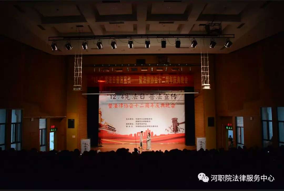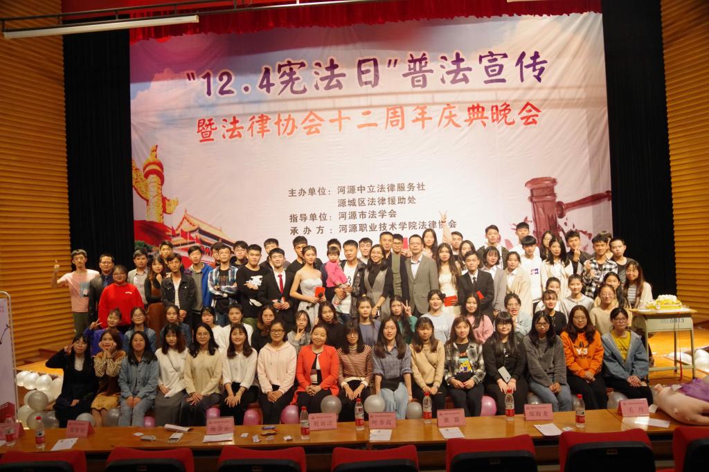 l2月4日,在第五个国家宪法日来临之际,我校在图书馆学术报告厅举行“12.4宪法日”普法晚会。晚会由河源中立法律服务社协同源城区法律援助处主办,河源市法学会指导,乐投官网法律协会承办。