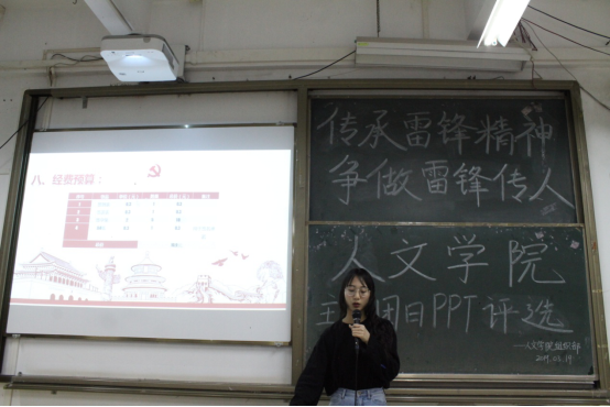 3月19日晚,人文学院于教学楼B312顺利开展以“传承雷锋精神,争做雷锋传人”为主题的团主题日PPT评选活动。此次活动共有49位班级团支书参加,组织部成员李子圆和曾明格担任活动主持。