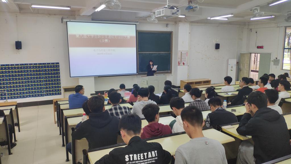 4月16日下午,电信学院在教学楼D107举办第九届大学生职业生涯规划设计大赛决赛。参加人员有学院党(总)支副书记徐国辉、全体辅导员、评委、学生会学习部、新闻网络中心、比赛选手、18级班委团支部全体成员、学生代表,比赛由18级学习部委员贺明兴主持。