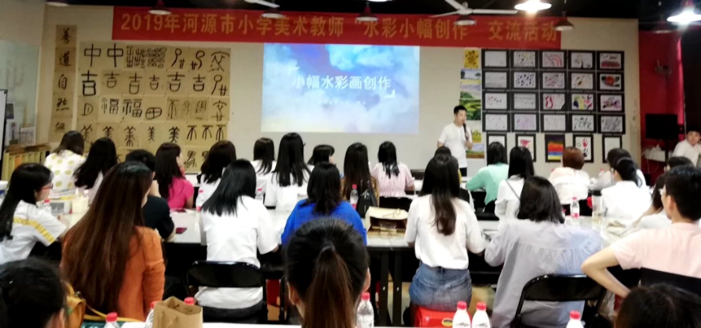 4月30日,河源市小学美术教师“水彩小幅创作”交流活动在雅居乐财富中心12楼隆重召开。本次活动由河源市教育局教研室主办,特邀的授课导师为广东高校美术与设计教育专业委员会理事、广东省美术家协会会员、河源市美术家协会理事、河源市青年美术家学会副主席、广东省乐投官网美术教育专业主任廖敏老师,全市共59名小学美术骨干教师参加了活动。