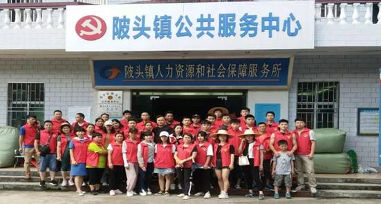 第三届村干部大专班班长带领该村5位村干部大专班学员到重灾区赈灾