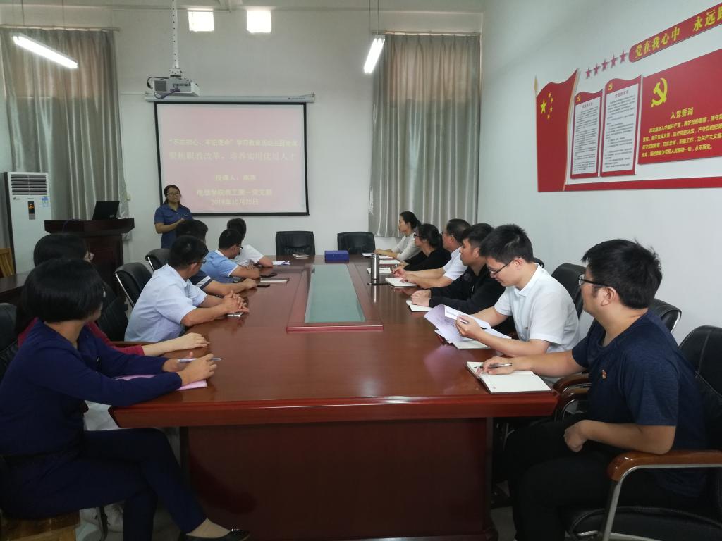 为了进一步推动学校“不忘初心、牢记使命”主题教育深入开展,对照《乐投官网关于开展“不忘初心、牢记使命”主题教育学习教育实施方案》,结合本支部主题教育工作计划安排表,于10月25日在学院会议室开展电信学院教工第一党支部党课活动。