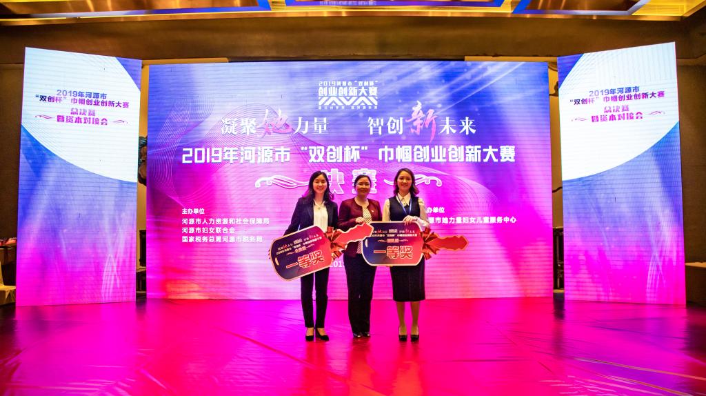 11月21日,由河源市人力资源和社会保障局、市妇女联合会、国家税务总局河源分局主办的2019年河源市“双创杯”巾帼创业创新大赛总决赛在河源市希尔顿酒店举行,我校智能控制技术专业龙淑嫔老师带领学生团队,通过初赛、半决赛与总决赛的重重比拼,在全市120多个项目中脱颖而出,以总分第一名的优异成绩荣获团队组一等奖,并获得5万元奖励。