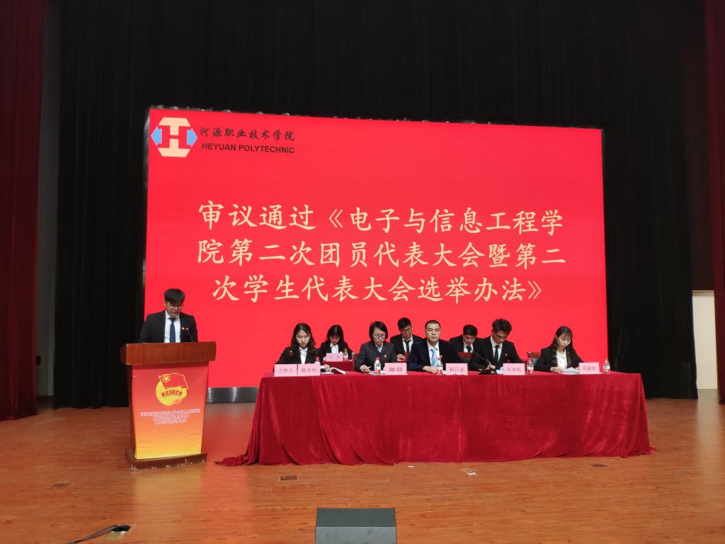 阮永盟同学上台宣读《电子与信息工程学院第二次团员代表大会暨第二次学生代表大会选举方法》,全体人员表决通过。