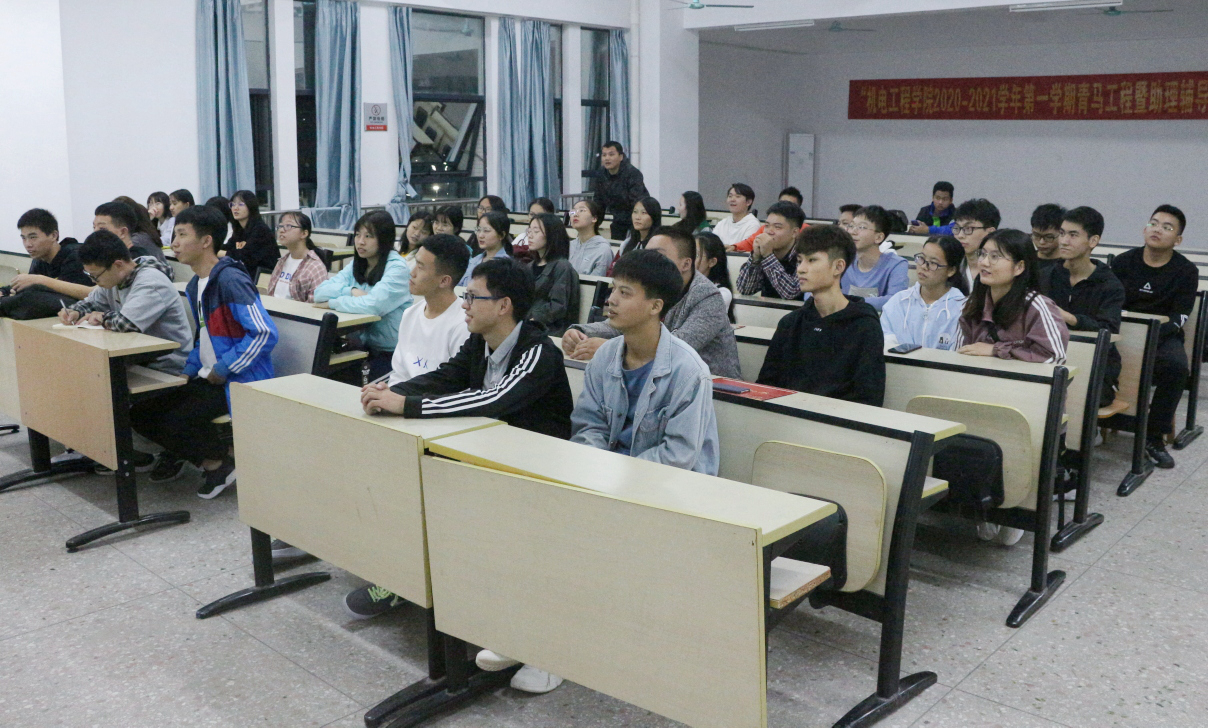 为帮助2020级新生全面了解所学专业和尽快融入校园生活,促进新生们相互认识,10月22日,机电学院开展了专业介绍会和新生见面交流会,学院各专业主任、专业老师、各班级辅导员、新生助理辅导员及2020级各专业全体新生参加了活动。