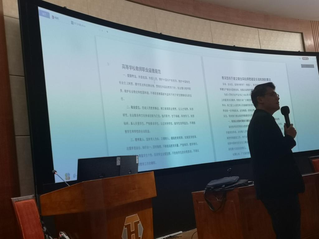 本次学习会的议程主要分三个阶段,第一阶段,张超副书记对《乐投官网关于进一步加强师德师风建设实施方案》进行了解读,并且根据方案内容提出了学院接下来具体工作要求。第二阶段,全体教职工一起学习《高等学校教师职业道德规范》、《教育部关于建立健全高校师德建设长效机制的意见》。第三阶段,院部与教职工现场签订《师德师风公开承诺书》。