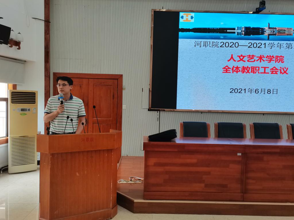6月8日,人文艺术学院在行政楼C108召开了本周全体教职工会议。