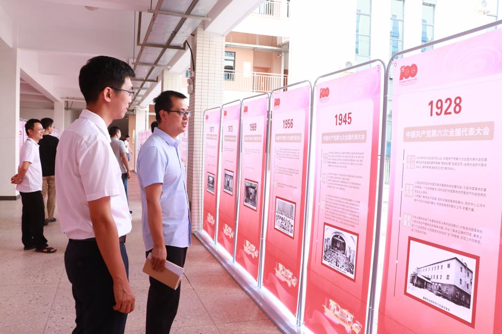 15:00,学院师生党员在机电楼一楼举行重温入党誓词暨“建党100周年海报展”开展仪式。