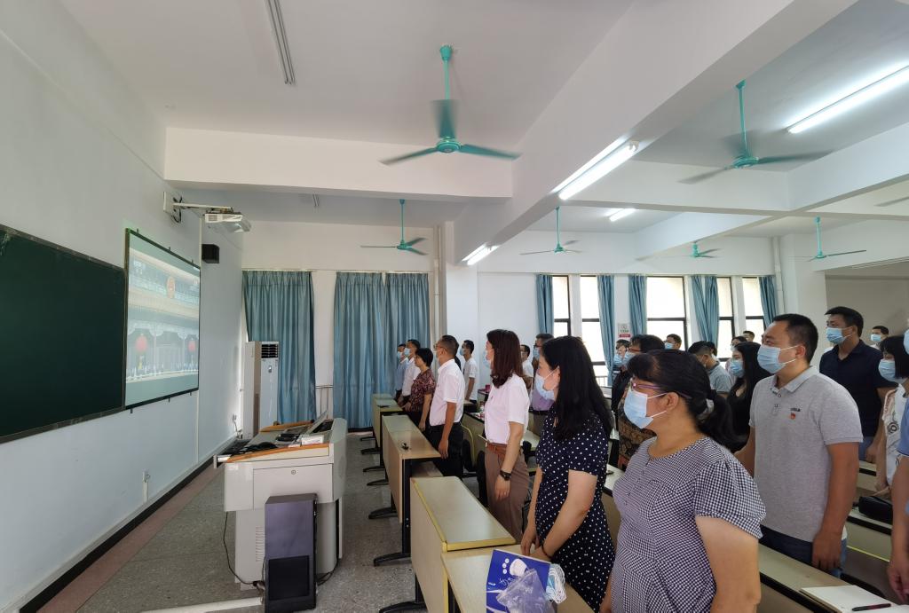 7月1日早上8:00,机电工程学院组织师生党员、部分教职工在实训楼D311和D312集中收看中国共产党成立100周年庆祝大会直播。