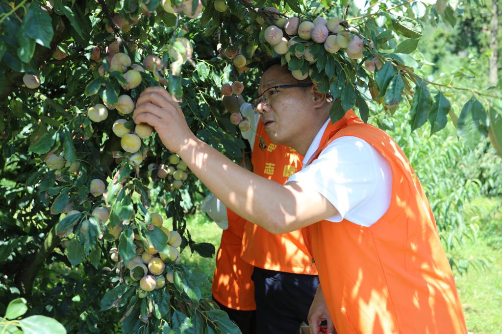 最后,全体党员前往连平县上坪镇小水村开展了“爱心助农”党员志愿服务活动,恰逢硕果满枝头,每一位党员同志挥汗如雨,热心的帮助果农摘李子、挑李子、装李子,用实际行动帮助果农开发销售渠道。