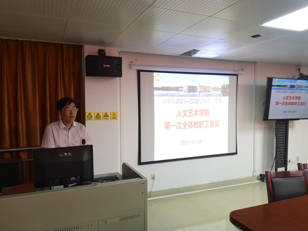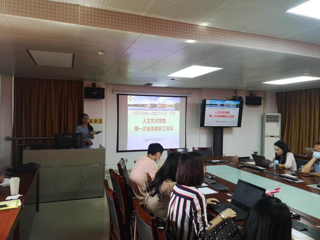 8月26日上午,人文艺术学院在行政楼B601召开2021-2022学年第一学期期初教职工会议,学校王小宁副校长、人文艺术学院全体教职工参加了此次会议。