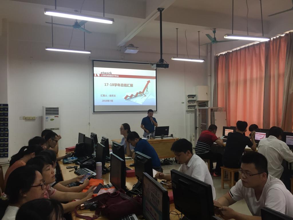7月18日下午,电信学院在实训楼A213召开2017-2018学年第二学期期末总结大会,学院全体教职工参加了本次会议。会议由学院副书记徐国辉主持。